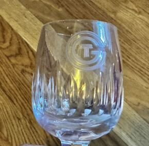 Gorgeous small wine glass from the service of the ss Normandie. The logo is not frosted as it is on most French Line crystal, but etched. In excellent condition and measures about 4.75″ tall. JF