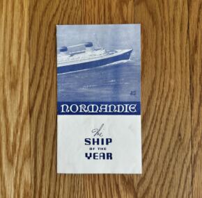 The ship of the year!  I’ll say!  Nice foldout advertising the ss Normandie.  Mint condition and dated May, 1935.