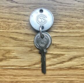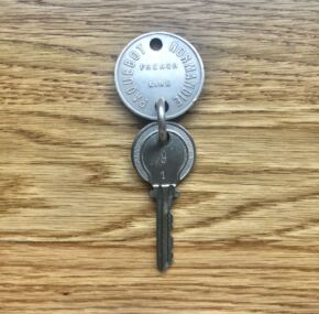 What an unusual and rare item! A first-class cabin key for the ss Normandie. Tag and key are both marked “CGT,” and the tag is also marked “Normandie.” These rarely come up for sale so grab it while you can!