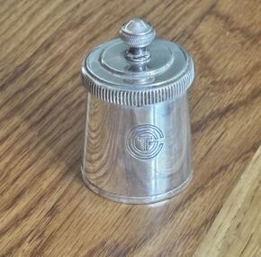 The French Line, ever attentive to your culinary needs, provided these small silver plated pepper grinders for table use. This one has the classic ss Normandie “dip” in the “C” in CGT. In very good condition and still comes apart to fill with pepper. Measures about 2.5″ tall. You could use this to spice up your next meal. The ship’s famous head chef Gaston Magrin would be proud.