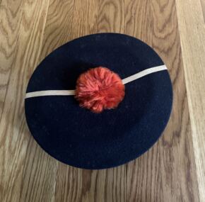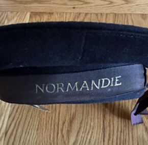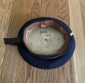 Wear your memorabilia!  Sailor’s hat with a hat ribbon from the ss Normandie.  An in-service item worn by one of her crew on the record-breaking maiden voyage to New York?  Made in France.  Great condition, but the inside leather band has seen better days.