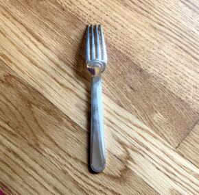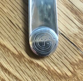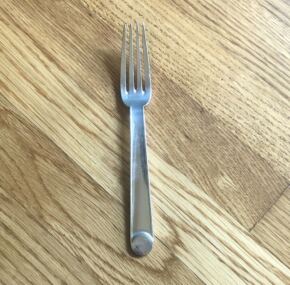 A Puiforcat dinner fork used exclusively in the first-class private suites of Normandie. Only the finest and most important passengers would have ever even seen this bespoke pattern. The almost inconceivable luxury of Normandie’s suites is long gone, but you can have a little entree to the ambiance and style of these spaces. In excellent condition. Measures about 8”.
