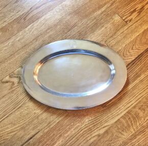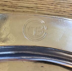 Imagine for a moment the archetype French dining-room steward presenting your order table side on this silver serving tray from the ss Normandie’s on-board service. Made by Christofle, the famous silver firm CGT turned to for their best silver service. It is a classic shape and design. What’s more, it’s a happy size to display. These trays are getting very tough to source. In very good condition measuring about 13.75″ x 9.5″