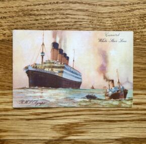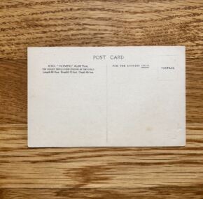 A depression frugality. Cunard and White Star merged in 1934, and to save money, the existing stock of postcards was taken back to the printers and Cunard was shoehorned in over White Star Line. Thus the last White Star postcards for Olympic instantly became the first Cunard White Star postcards for Olympic. Makes a great addition to any collection. In excellent condition.