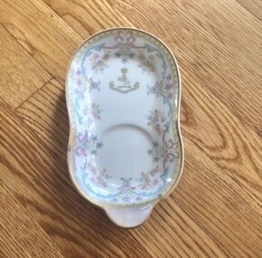 Another one of those “Wow” items! A tea tray in a pattern used on board Cunarders in the pre-World War I period. This is a part of the tea set from ships like Lusitania and Mauretania and is probably one of the prettiest patterns Cunard ever used. In all my years of research, I have only seen this pattern in one photo on board Mauretania and that was in one of her first-class pantries. Extremely difficult to find. A single piece of this pattern was also recovered from the wreck of the RMS Carpathia back in 2007.