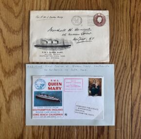Super pair of postal cachets commemorating the first and last voyage of the well-loved RMS Queen Mary. The Alpha and the Omega!