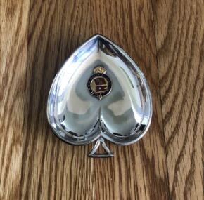 Highly sought-after EPNS souvenir ashtray from the RMS Queen Elizabeth. From the “suit of cards” set of ashtrays sold in her on-board gift shop. These are quite fun to collect. Get the entire set, this will start you off as it is a spade.