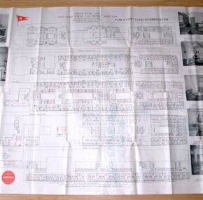 The condition of the plan is near perfect with very few holes at the folds and only a slight 1/4” tear at some of the edge folds. A passenger has circled two cabins in pencil and written the passages fares for them. This does not detract as it was written in period and was how these plans were intended to be used. Besides, this guy was looking at some great cabins. Imagine how much they enjoyed crossing on the greatest ship in the world later that same year — now over 100 years ago. Some slight discoloration of the plan where it was folded. Measures about 40” x 30”. Rare does not do this plan justice.