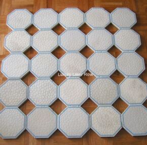 Although this pattern of tile was produced from 1886 to the early 1920’s, according to Villeroy & Boch, the back stamp on each tile indicates that these particular ones date no later than about 1910. The “model number” for the pattern is 562.