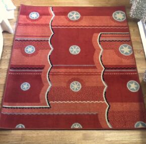 What can I say? One of the finest carpets from the Queen Mary I have been fortunate to offer. This carpet came from the granddaughter of a couple who traveled on their honeymoon in the mid 1950s. They had such fond memories of their time on the QM that, when the ship came to Long Beach, the couple went to one of the city sales and bought a number of rugs and chests of drawers to furnish their home. It really is a testament to the love that people had and still have for the ship.