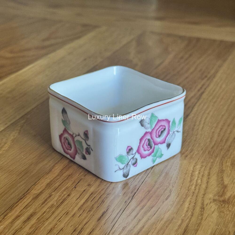 Lovely waste dish from the tea service produced by Copelands in the famous rose pattern.  It seems that this pattern appears to have only been used on Media and Parthia.  About 2 5/8″ across and is nearly 1 5/8″ tall. Bottom marked with the Cunard White Star logo. Excellent condition.  Probably the best you’ll ever see.  JF