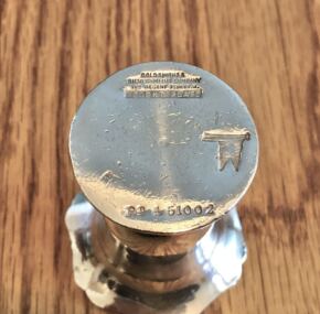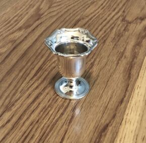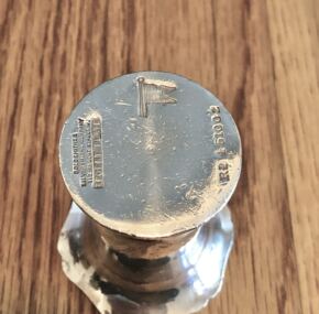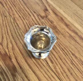 With most of Titanic’s silver on the sea floor and no other ship in the White Star fleet having used this pattern, we can safely say this piece was used on Olympic. It likely made its way down to us today via the RMS Queen Mary or RMS Queen Elizabeth. Cunard White Star, ever frugal and in the midst of the depression, transferred large amounts of silver and other useful items from Olympic and Majestic before they were scrapped to the QM. To this day, you can see quite a number of silver White Star items on display on board the Mary. In fact, they used to have some nice examples of restaurant silver in their display. This piece is in excellent condition with some loss of silver on the inside, perhaps where the toothpicks rubbed the bottom. Rare but cute too!