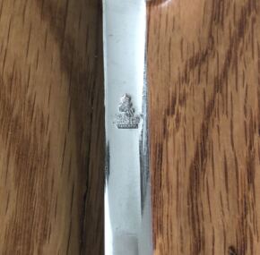 Relive a grander era with this skewer. Measures about 12″ long and made by Harrison brothers with a nice Aquitania-era Cunard logo.