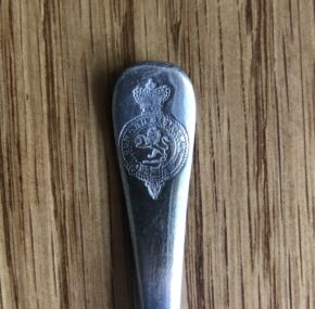 Long salt spoon from the tables of the famous Cunard Line. Great 19th century logo and made by Elkington with a date code of 1900. Perhaps for the Saxonia? Measures about 3.5″ long and in very good condition.
