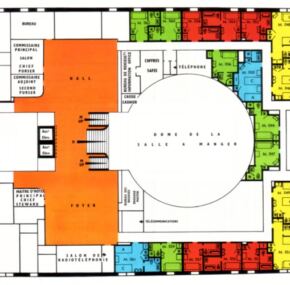 Superb fold-out color-coded deck plan for first class. Who fantasizes about traveling any other way?  Eight color photos on glossy paper. In French and English. One of the best deck plans you can find for her. Mint condition.