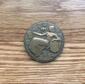 After Normandie, the most beloved ship of the French Line fleet is a toss up in my opinion between the France of 1962 and the Ile. Like De Grasse, Ile received a post-war medallion of which this is an example. Various heraldic shields on one side; the other showing the post-war profile of the ship and a porthole. A fine medal from CGT. Uniquely signed and dated by the artist, Marcel Renard. In excellent condition.