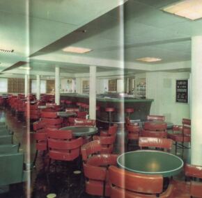 Rarely seen plan for the third-class accommodations on board the United States. Printed on glossy paper, this plan shows the added Writing Room and Library which were taken from first class around 1960 to increase the number of third-class public rooms. In looking at the plan, I realized that none of her third-class cabins had bathrooms, only sinks. Excellent condition.