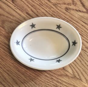 Oval bowl used as a vegetable dish on board. Measures abut 5.75″ and made by Lamberton. Excellent condition. This was purchased at the 1984 United States auction by the prior owner.