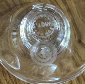 The French Line went for an absolute classic when they began using the famous St. Louis crystal on board the ss France in 1962. It was the same crystal company Jackie Kennedy chose at the same time for the White House. The cordial is marked CGT and in perfect condition. Measures about 3.5″ tall. These were fairly expensive in 1972 at about $10 each. A quantity available.