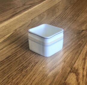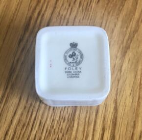 The cube Foley sugar bowl. Made of fine bone china. I often have a tough time keeping these in stock so finish your tea set with this cute sugar bowl. Excellent condition with no chips, cracks, or crazing. Measures about 1½” tall and is nearly 2″ square.