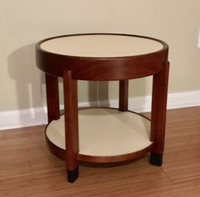 A perfect little Art Deco table originally from the White Star liner RMS Britannic of 1930. Transferred to the RMS Queen Mary after Britannic was taken out of service, this solid mahogany table found new life in the tourist (3rd) class lounge that was added to the Queen Mary’s forward Promenade Deck in the late 1950’s. Completely restored and absolutely gorgeous. Another one of those interesting items of furniture that Cunard White Star Line moved around their fleet. Isn’t it just fascinating to think about how much furniture from White Star Liners might still be on board RMS Queen Mary to this day? Stands about 16″ tall and measures about 16″ across. Would be perfect as a side table next to your favorite reading chair.