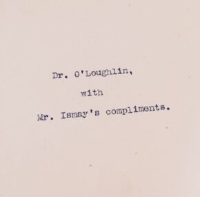 Titanic — Dr. O’Loughlin Ismay Testimonial Book