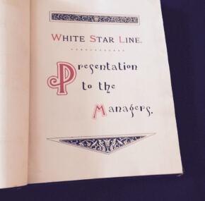 During my recent travels, I found a book that is one of those items that makes you say “wow”! It is a testimonial book about a silver service presented to Thomas Ismay (who founded White Star) as a thank you from the shareholders of White Star for his outstanding handling of the business (and quite frankly for making the shareholders so much money!). There are few copies of this still around, but what makes this one even more special is that it was presented to Dr. O’Loughlin (White Star’s senior Surgeon who was lost on Titanic). O’Loughlin was a very old and dear friend of Thomas Ismay and Bruce Ismay and had worked for White Star for many decades. In fact, Bruce Ismay and O’Loughlin dinned together that last night on Titanic. I have always wondered what they spoke about, having worked together for so long.