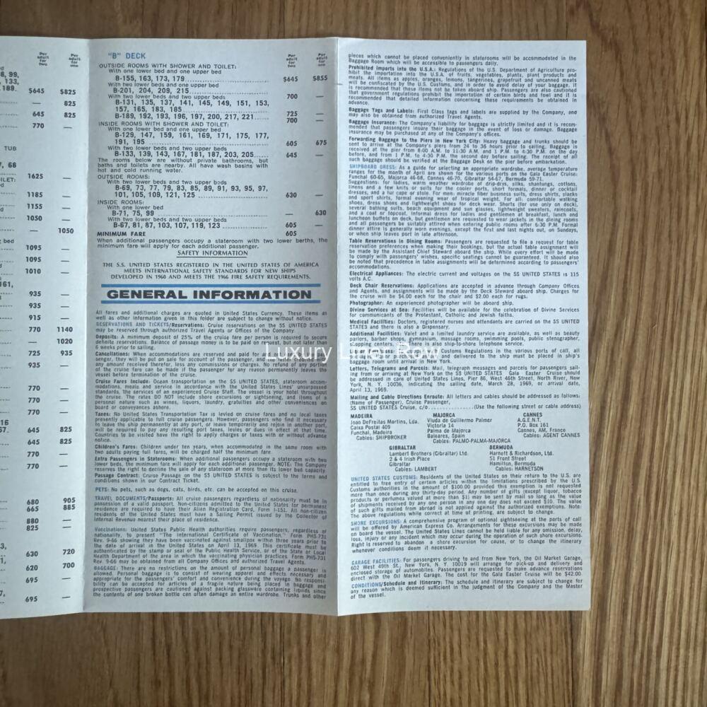 I like the artwork on this Easter cruise brochure. The easter bunny loves the ss United States! Brochure is a foldout with full-color images and rates. This is for the March 28, 1969–her last Easter in service. JF