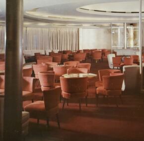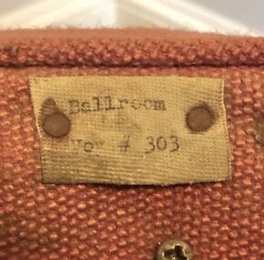 After hour of searching, I was only able to find one chair off to the side that wasn’t ruined. I was pleasantly surprised to find it, however, since it came from the first-class ballroom. These chairs are iconic in their mid-century style and only rarely become available for sale, usually then at auction for high prices. In very good condition with general wear from use, but still in the original USL fabric. The tag on the bottom tells us that it was recovered on Voyage #303. Could use a good cleaning. I’ve cleaned a few pieces for my collection, and they look amazing.