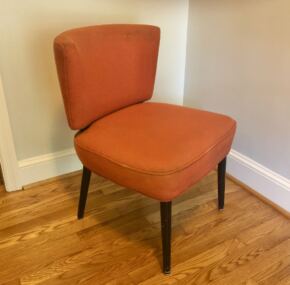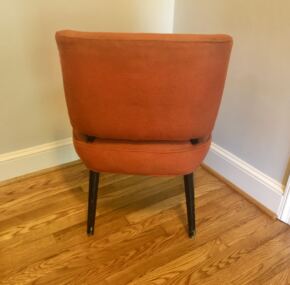 Measures about 29″ tall x 21.5″ wide x 22.5″ deep. The chair is visible in the archival photo as the closest chair to the camera and could, in fact, be this very chair.