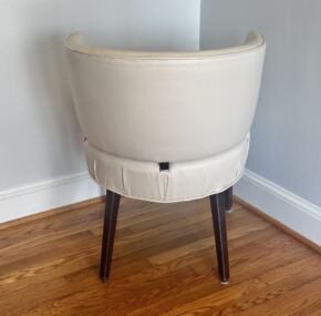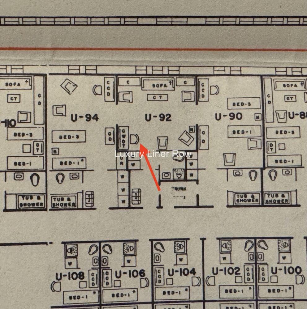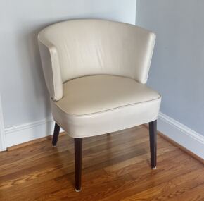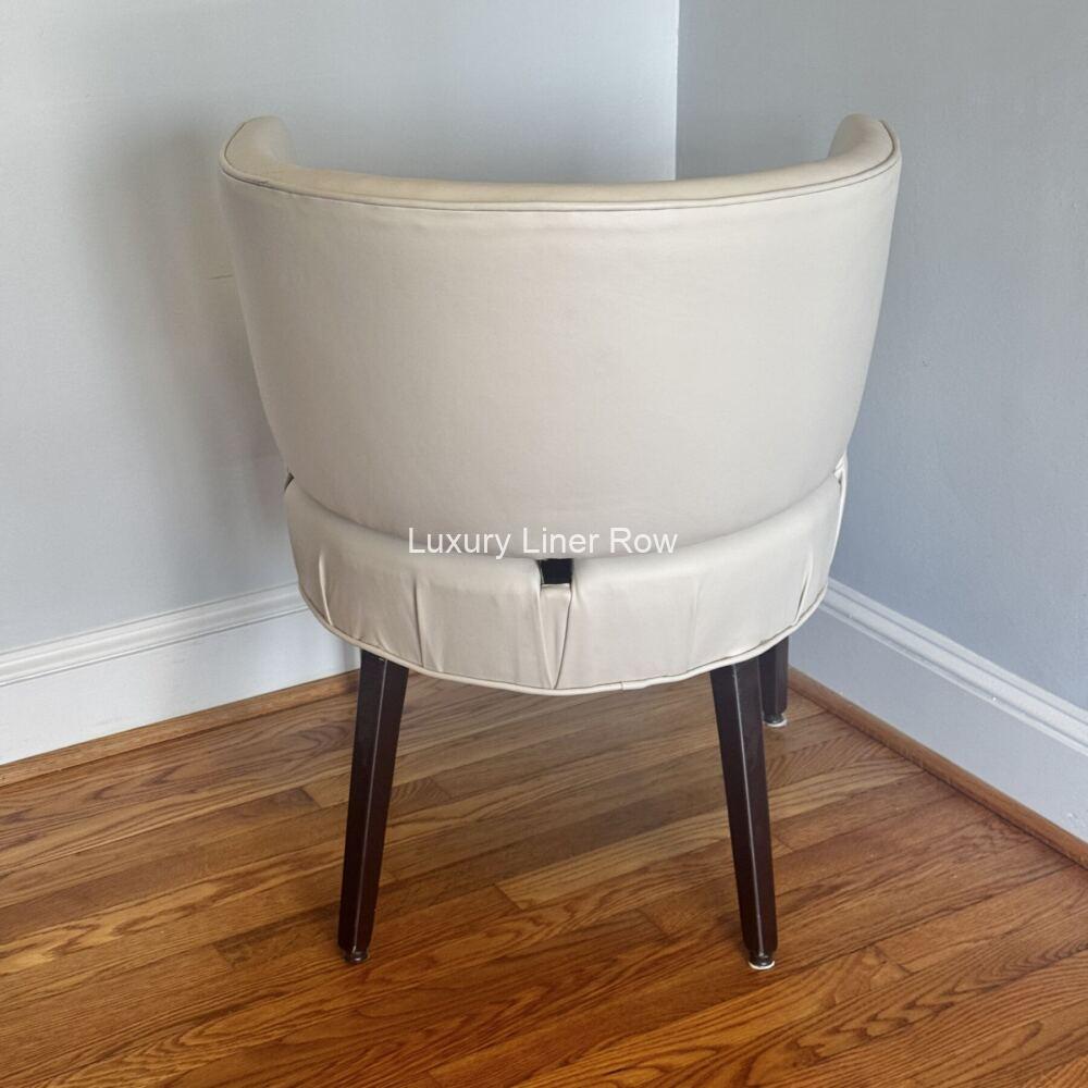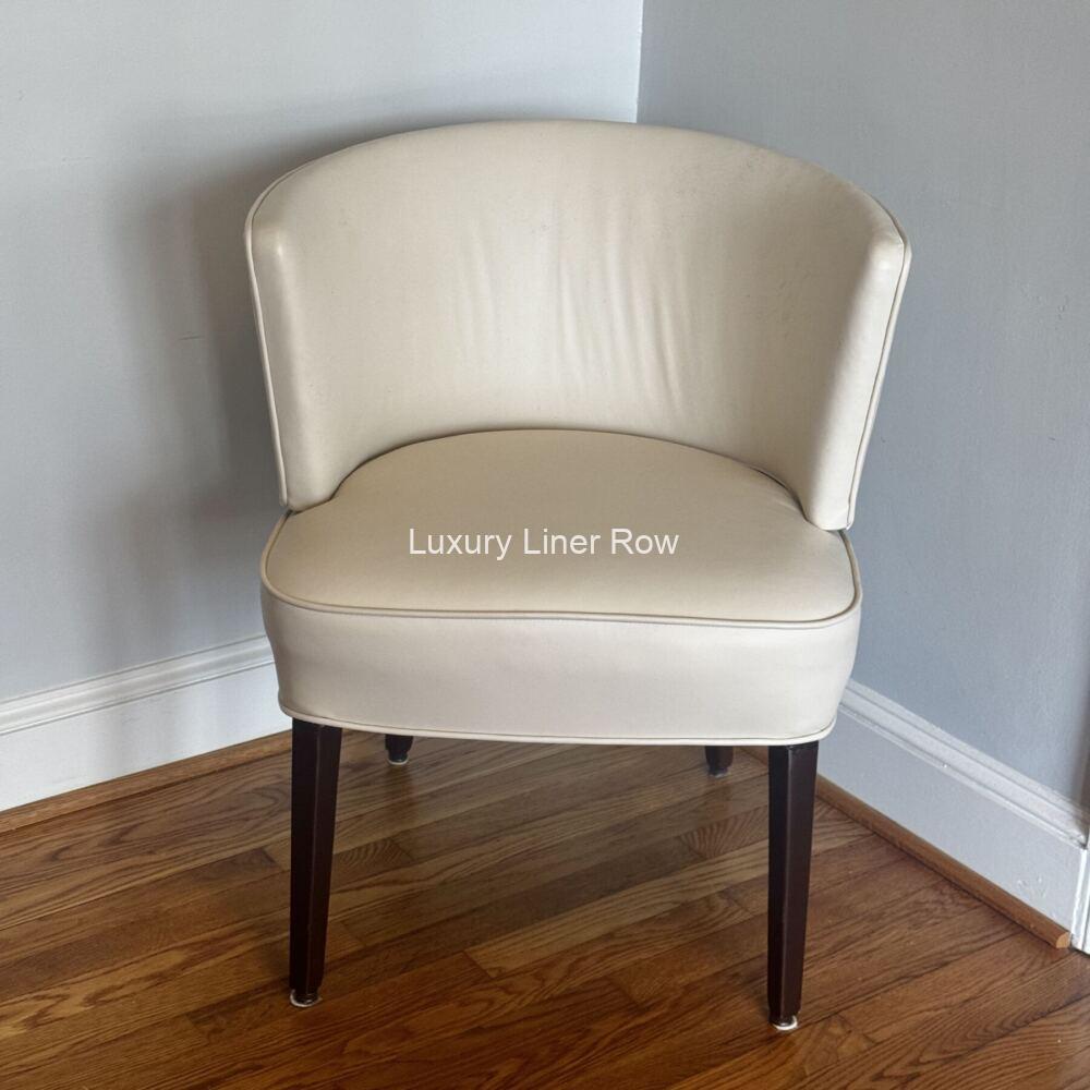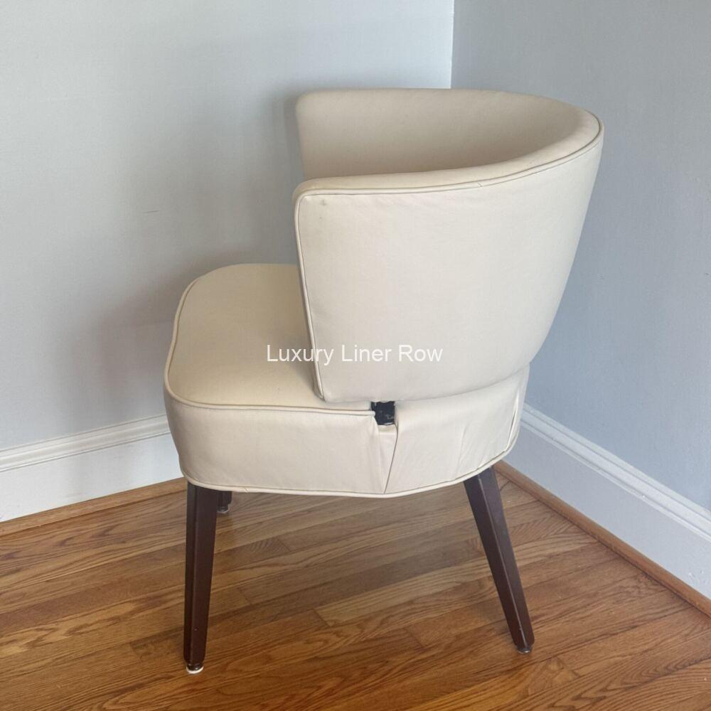 An amazing chair from a first-class suite on board the world’s fastest liner, the ss United States. Unholstered in an off-white leather, this chair is fully marked on the bottom with its original location on board. This comes from the suite on the opposite side of the ship from the famous Duck Suite. In great condition and ready to take pride of place in your Big U collection. As a well-known memorabilia dealer used to say: “rare as hen’s teeth.” Furniture from any suite on board the ssUS is certainly that! Not sure if it has been reupholstered, but if it has, it was extremely well done.