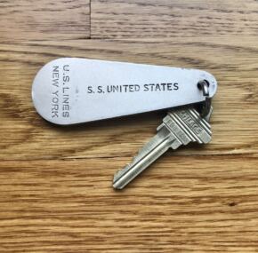 I’m really opening doors for you now! Doors that don’t exist anymore, that is, perhaps out outside of some Turkish farm house. Key tag with key from on board the ss United States.