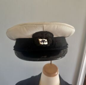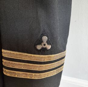 Uniforms very rarely come onto the open market, and here we have a beauty. Engineer officer’s coat and hat from the United States Lines, maybe from the Big U herself. The hat size is 7 7/8. Jacket has no size listed. Great condition. MO