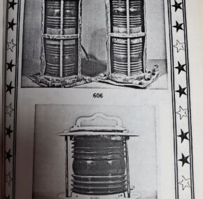 As you can imagine, these navigation lights are one-of-a-kind items, and Schultz stated in his catalog that, as far as he knew, these were the only matched and fully documented pair of running lights to exist from any major ocean liner.  I think that statement still stands.  Over the years I have had and sold through Luxury Liner Row the port running light from the sunken White Star liner RMS Republic and the starboard running light from the RMS Olympic.  But a matched pair?  Never.