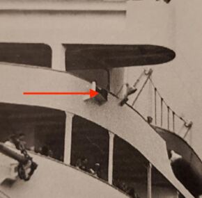 Picture it.  Norfolk, VA.  1984. Famed ocean-liner memorabilia dealer Ken Schultz visits the ss United States shortly after the 1984 auction of her fittings.  During his visit, this pair of running lights was removed personally by maritime author Mark Warren whom Schultz asked along for help.