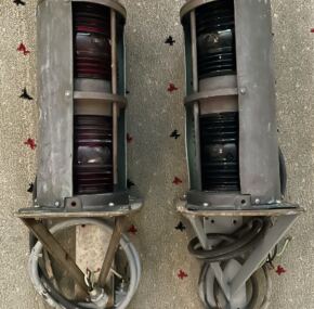 The port light is perfect, and the green starboard light has a tight crack in the glass.  They are in original condition, having only been owned by one collector who purchased them directly from Schultz.  Since they run on US electric standards, it should be a breeze to get them working again.