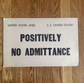 A sign from the Big U. It is pretty adamant too about not entering! A fun addition to any ss United States collection. Some slightly bumped corners and measures about 17″ x 11″.