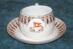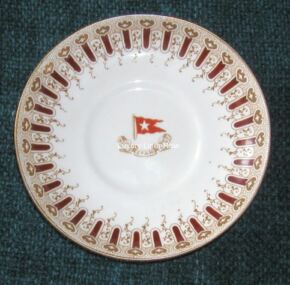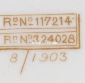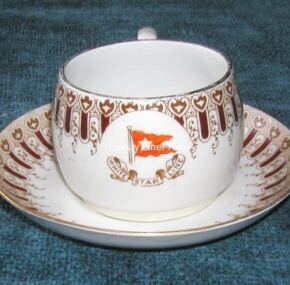 The brown-on-brown pattern is one of the most confusing patterns White Star ever produced. Where exactly was it used? Why have we not seen dinner plates? White Star researchers can’t seem to agree. One of the rarest pieces of White Star china I have offered. Identical to its turquoise and brown cousin except with brown “tongues.” In wonderful condition with no cracks or crazing. Only a tiny chip in the rim.