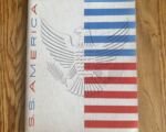 Superb brochure for the America. 24 pages with 21 images of first, cabin, and tourist class. Centerfold broadside rendering with color cut-away renderings of four cabin types showing the various layouts. Dates to the early… read more ›