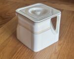 Foley bone-china tea pot in the famous cube pattern. Measuring about 4″ square and standing 4″ tall. Excellent condition. No chips or crazing and in excellent condition. This is the larger of the two sizes… read more ›