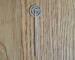 Highly sought-after silver-plated sandwich pick from the service of the ss Normandie. Beautiful CGT French Line logo in the top. Measures about 3.25″ long and in excellent condition. JF